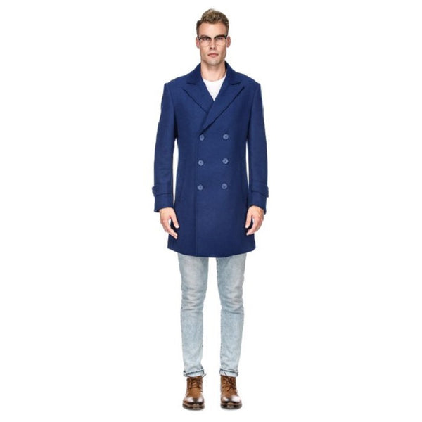 Mens Knee Length Pea coat Navy6 ButtonDouble BreastedPeak LapelOne Chest PocketTwo Flap Front PocketMens Peacoat