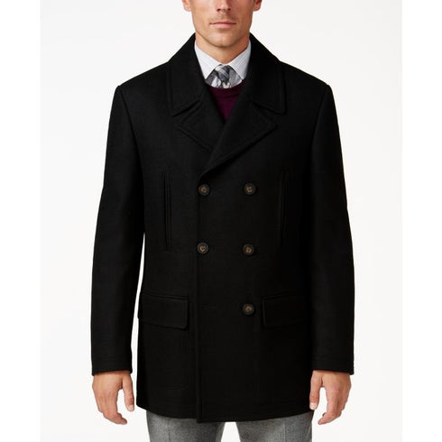 Wool blend Double Breasted 6 Button Two fron patched pocket plus two side pockets Jacquard Lining with 4 interior pockets Available in 2 Colors Interior Cell Phone pocket Designer Mens Wool Peacoat Sale Color : Black