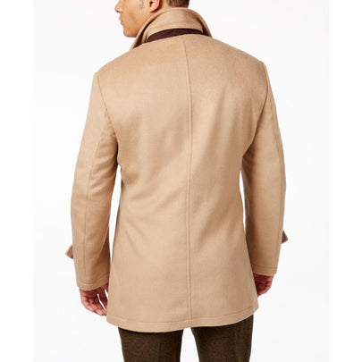 Product Description: Make a refined impression with this men’s camel overcoat, designed with a luxurious light faux fur collar for an elevated cold-weather look. This single-breasted coat combines classic tailoring with upscale materials, offering both warmth and unmatched elegance for...